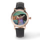 Uhr, Klassische Damenuhr mit schwarzen Lederarmband