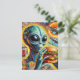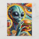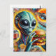 Funky Alien Eats Cheeseburger und Fries Collage Postkarte