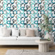Das Design präsentiert eine auffällige Mischung aus beige-braunem, hellgrauem und dunklem Blau, aquamarinem Blau, Meeresgrün und Weiß in einem abstrakten Kunstmotiv. Durch seine abgerundeten und runden Formen neben den quadratischen Winkeln schafft es einen dynamischen und rhythmisch visuellen Effekt. Das Muster ist verziert und elegant, hat aber eine trendige und Hipster-Essenz. Es ist für diejenigen gedacht, die entweder ein elegantes, modernes Ambiente oder ein Vintages Retro-Ambiente suchen, das sich mit verschiedenen Geschmäckern und Persönlichkeiten abstimmt. Dieses vielseitige Muster schmückt eine Reihe zeitgenössischer Wohngestaltungen, die sich hervorragend eignen, um verschiedene Räume wie Master- oder Gästezimmer, Küchen, Wohnbereiche, menschliche Höhlen, Schlafzimmer, Studios oder Appartements zu gestalten.