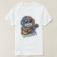 Ein cooler Baboon mit Sonnenbrille spielt eine E-Gitarre mit Geschick und Leidenschaft. Baboons sind ape-solut cool