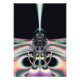 Helles und funkelndes originales Fraktal Design, abstrakte Kunst, farbenfroher Vogel auf schwarzem Hintergrund