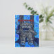 Funky Blue Sock Monkey Circles Bubbles Pop Art Postkarte