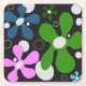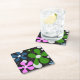 Funky, abstrakte Blume in Grün, Rosa und Blau mit weißen Polka-Punkten auf Untersetzer aus Schwarzpapier. Spaß für jeden und jeden Anlass.