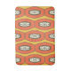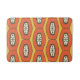 Ein modernes inspiriertes Muster aus der Mitte des Jahrhunderts, das sich in senkrechten Ketten, mit Sputnik-Sternexplosionen in Orange und Gelb wiederholt.