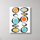 This fabulous mid century modern canvas print feys two sets of funky abstract hanging circles in the colors of turquoise blue, two shades of orange, cream, avocado green, gold and black. This will make hat die Rechnung zum Your Home Decor!
