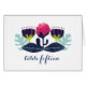 Moderne und elegante Funky Floral Wedding Tischnummer Card mit einer farbenfrohen Auswahl an dunkelblauen und periwinkligen Blättern und stilisierten Magenta-Rosa und Lila-Blumen. Diese einzigartige und trendige Tischkarte kann einfach mit Ihren Hochzeitsdetails und Tischnummer(en) angepasst werden. Klicken Sie für weitere Anpassungsoptionen auf die Schaltfläche Anpassen.