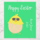 Funky farbenfrohe, moderne niedliche Osterkuppe mit Sonnenbrille auf grünem Hintergrund. Whimscal und Retro. Farbenfroh und funky. Das perfekte Osterwein-Geschenk