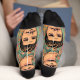 Fröhliche Socken mit einem hübschen braunen Haar über funky grün aquamarin blau-rosa-orange Hintergrund. Holen Sie sich diese jugendlichen Socken für sich selbst oder für Lieben und ließ den Sommer Spaß, Festivals oder Party Zeit beginnen. #Partytime #Music #Groove #Events #men