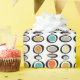 Fügen Sie Ihrem Urlaubsgeschenk einen Pop Spaß hinzu, mit diesem trendigen Retro-Papier aus der Mitte des Jahrhunderts. Die hellen und kühnen türkisfarbenen Farbtöne sind in Orange-, Gold- und Bräunungstönen sowie Schwarz gehalten.