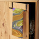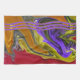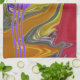 Ein wunderschönes Flüssig-Design-Schmelzen von lila, violetten, grünen, orangefarbenen und roten auf diesem Küchentuch. Das Design hat drei lila, in Orange umrissene Linienlinien, die auf einer Seite in Farben, die aus dem Design geplagt sind, dargestellt sind. Klicken Sie auf die orange Anpassen! um Text wie einen Familiennamen hinzuzufügen. Stellen Sie sicher, dass Sie die passenden Servietten und Tischset auskosten.