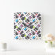 Funky Makeup Cosmetics Collage Pattern Quadratische Wanduhr