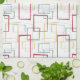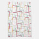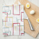Dieses trendige, moderne Küchenhandtuch aus der Mitte des Jahrhunderts besticht durch dunkelrote, hellblaue, weiche grüne und gelbe abstrakte Quadrate und Rechtecke. Es wird durch dünne, abstrakte Quadrate und Rechtecke hervorgehoben. Fügen Sie Ihrem Küchendekor einen Pop Retro-Spaß hinzu!