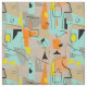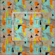 Moderne Rechtecke aus dem Mittelalter in Orange, Gold und aquamarin auf beigem Hintergrund mit schwarzen Wirbel und Linien. Der perfekte Stoff für die 50er Jahre.