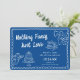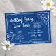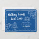 Diese moderne Hochzeitsfeier bewahrt das Datum auf einer handgezeichnet Bilderwand mit Kuchen, Kuchen und Cocktails in Weiß, die sich über dem perfekten Blau befinden. Der Look ist handgemacht und macht Spaß, aber dennoch romantisch und elegant! Weitere Informationen finden Sie in der Auflistung. *Alle Farben sind editierbar*