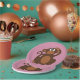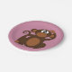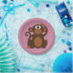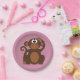 Vergnügt kleiner, kreuz mit Augen Affe, der sich den Kopf kratzt. Anpassen durch Ändern der Hintergrundfarbe.