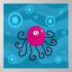 Funky Cartoon Oktopus Schwimmen in den Ozeanwellen mit Retro-Luftbläschen.