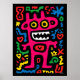 Hell, kühn und funky - diese rosa Alien ist ein sonderbares Monster voller Neonenergie. Umgeben von spielerischen Doodles und leuchtenden Formen ist es ein Muss für Pop-Kunstliebhaber und alle, die funky und farbenfrohe Wohngestaltung Lieben.