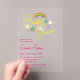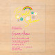 Bold and colorful retro bridal shower with flowers, rainbow, and peace sign