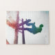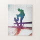 Grungy strukturierte Skateboarder-Silhouette mit Regenbogen färbte Akzente. Skater ist das freigegebene Modell.