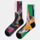 Farbenfrohe funky Socken, die von beruflichen Künstlern aus originalen Kunstwerken gefertigt werden, sind einzigartige und künstlerische Schuhe, die ein einfaches Objekt in ein lebendiges, tragbares Meisterwerk verwandeln. Diese Socken zeichnen sich durch auffällige Designs aus, die die Kreativität und den Stil des Künstlers widerspiegeln. Diese Socken sind nicht nur für eine Aussage gedacht, sie sind auch für den Alltag bequem. Sie lassen sich locker mit Sneakers oder Stiefeln tragen oder sogar mit Kleiderschuhen für eine sonderbare Drehung auf beruflichem Kleid paaren. Die farbenfrohen, funky Socken von beruflichen Künstlern verwandeln ganz gewöhnliche Socken in ein kunstvolles, lustiges Accessoire, das Freude, Kreativität und Individualität in Ihren Kleiderschrank bringt. Funky Socken, Retro-Socken, Wearable Art, Art to wear, Einzigartige Kleidung, Einzigartige Socken, Original Schuhe, Multicolor Socken, Colorblock Socken