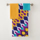 Dieses Design ist voll von hellen Farben und kühnen Formen. Gelbe, lila, blaue und aquamarine Lagen. Es hat ein spielerisches Festivalgefühl mit einer Touch Retro-Stil.