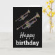 Funky modernes Design der musikalischen bunten Trompete mit Happy Birthday Zitat. Modernes und zeitgenössisches Musikdesign, das perfekt für einen musikalischen Gruß geeignet ist.