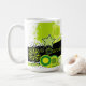 Fun an Funky Worlds Best Mama Tasse. Splashs aus kalkgrünen und schwarzen Formen, Spritzern und Blume. Aufnahme und Design sind in Zickzackform. Für Mama von heute mit einzigartigem Design konzipiert, "NICHT DIE Tasse IHRER JEDEN TAG-Mama"