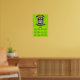 A funny 2026 wall calendar features a determined cat in goggles and a helmet, with text that reads NEXT STOP, WORLD DOMINATION. The background is hot neon green. Created by Scarebaby Design, all rights reserved.