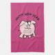 Funny Cartoon Illustration eines kleinen rosa Schweins (Abbildung Nr. 2) auf transparentem Hintergrund mit anpassbaren Texten: HAPPY NEW YEAR und 2019. Sie können Text (Schriftart, Größe, Farbe und Position) und Hintergrundfarbe leicht ändern, indem Sie auf die Schaltfläche Anpassen klicken. Design auf Küchenhandtuch mit lila Hintergrund. Erhältlich mit anderen lustigen Cartoon-Illustrationen. Passende Kleidung, Accessoires, Zuhause-Produkte, Büroprodukte und mehr... Ideal für Chinesisches Neujahr des Schweins 2019 oder Geburtstag (Leute geboren im Schweinejahr).