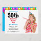 Ein lustiges, leichtes 50. Geburtstagsfest, das Sie persönlich gestalten und für Ihre 50. Geburtstagsfeier ausschicken können. Die Wörter "50. Geburtstagsblast" sind Set mit beliebter Typografie. Sie können das Beispiel-Foto durch eines Ihrer eigenen ersetzen. Die Textfarben können über das Menü Bearbeiten geändert werden. Auf der Rückseite der Karte wird ein Geburtstagsmuster angezeigt. Andere Farben und Muster sind verfügbar.