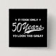 Make a statement at any celebration with this funny 50th birthday pinback button. Featuring the eye catching text It Took Only 50 Years To Look This Great, this accessory is a great way for the birthday honoree to stand out. Pin it on a shirt, hat, or gift bag to add a touch of personality and humor to the event. The classic typography and simple color palette make it a versatile party favor or a small birthday gift for anyone reaching the fifty year milestone.