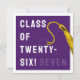 Creative Abschluss-Karte für die Klasse der '25 Absolventen mit lila Gradmütze, Goldtassel und lustige Linie. So personalisieren Sie Text bearbeiten, um seinen Namen hinzuzufügen.