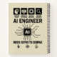 This funny AI Engineer design is perfect for anyone passionate about coding, machine learning, and artificial intelligence. Featuring a clean and modern tech-inspired style with a humorous coffee theme, it’s ideal for programmers, developers, data scientists, and tech geeks. A great gift idea for coffee lovers in tech who enjoy coding and working on AI projects. Suitable for birthdays, work environments, or casual everyday use.