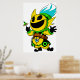Funny Alien Cartoon Kreatur in gelben Kleidung. Das ist eine künstlerische KI.