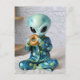 Funny Alien Eating a Bagel in Bed Postkarte