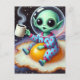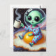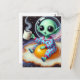 Funny Alien on a Fried Ei in Space Postkarte