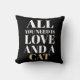 Add a touch of heartfelt charm and cozy style to your home with our "All You Need Is Love And A Cat" throw pillow! This elegant design features bold white text with "CAT" highlighted in a beautiful golden hue, set against a sleek black background, making a sophisticated statement about what truly matters.