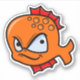 Adorable wütende Cartoon Goldfisch. Er hat einen orangefarbenen Körper und rote Flossen. Seine Augen sind groß mit einem lustigen, aber wütenden Ausdruck. Sein Mund ist in einem halben Lächeln, das seinen komischen Look ergänzt.