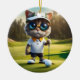 Funny Animated Cat Golf Player, Keramik Ornament
