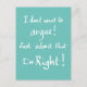 Ich Woll nicht zu streiten, gebe einfach zu, dass ich recht habe!" Ein lustiges aquamarines Abzeichen, das perfekte Geschenk für argumentative Familien und Freunde. Funny Argument Handwriting Zitat Witty Joke Spaß Slogan Design von The Sweetmans