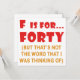 Ein unglaublich witzig Geburtstagsgummi, das sagt: 'F ist für...40! Aber das ist nicht das Wort, an das ich dachte."