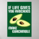 Wenn dir das Leben Avocados gibt, mach Guacamole. Ein lustiges Stück über das alte Sprichwort, um Limonaden aus Zitronen zu machen. Ein mexikanischer Spaß für einen Feinschmecker, der niedliche Witze mag.
