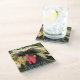 Haben Sie einen schlechten Haartag? Schützen Sie Ihre Tischdecke vor Wasserzeichen und Flecken mit diesem dekorativen, gläsernen Getränkekoaster, das das Foto eines lustig aussehenden Hahnenhühnchens mit schlechten Haaren und Mem, das BAD HAIR DAY liest, zeigt.