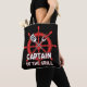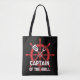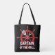 This "Captain of the Grill" tote bag design features a bright red ship's wheel serving as the backdrop for crossed spatula and grill fork icons, perfectly blending nautical passion with outdoor cooking.