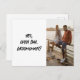 Bereit, sich mit Lachen in den Trauzeuge zu ziehen? Unsere unglaublich witzig Vorschlagskarte enthält spielerische Pinselskripte, die handgeschriebenen Text frage: "Ja, öffnen Sie Bar. Trauzeuge? Fügen Sie Ihr Foto für eine zusätzliche Touch Spaß und sehen Sie, wie sie sagen "I do", um Sie auf Ihrer Hochzeitsreise zu begleiten.