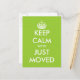 Funny behielt ruhig bewegende Postkarte für neue Zuhause. Machen Sie Ihren eigenen lustigen behalt ruhig und führen Sie Parodie-Design für Ihre neue Adresse. Bewahren Sie den Spaß für Zuhause und Business. Ändern Sie die Menge, um den günstigsten Preis pro Postkarte zu erhalten. Personalisierter Text auf der Rückseite Apfelgrün.