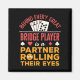 Ein lustiges Bridge-Kartenspiel-Geschenk, in dem steht: "Hinter jedem großen Bridge-Spieler ist ein Partner, der seine Augen rollt."
