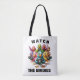 Mit dieser überdruckten Tasche, die mit künstlerischen Werken von bunten Singvögeln, die begeistert von Kameras spielen, ein unsichtbares Motiv frage, "die Kamera arbeiten", und mit der Beschriftung "Sehen Sie sich die Birdies an." Passen Sie mit einem eigenen Meme an, oder verwenden Sie, wie es ist! Umkehrung zeigt identisches Design. Eine tolle Geschenkidee für Shutterbugs, Vogel-Nerd und Naturliebhaber! Der Internationale Vogeltag ist der 1. April und der Weltnaturschutztag ist der 11. Mai. Design © W.H. Sim. Weitere Informationen unter zazzle.com/word2art