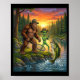Funny Bigfoot Fishing Mens Alien Sasquatch Fishing Poster