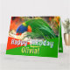 Eine weitere schöne australische VogelGeburtstagskarte von Blue Sands Studio - Nachricht über Sonderbestellungen! Diese Karte enthält ein originelles Foto von Ingrid Mackey, eines Regenbogenloriketts. Er hat lebendige Federn von blau, grün, rot und gelb. Er wurde in einem Grevillea-Busch gefunden, der eine Blume aß. Auf der Vorderseite der Karte befindet sich der Text "Happy BIRDday Olivia", den Sie bearbeiten können. Im Inneren können Sie den Gruß, die Nachricht und Ssignoff bearbeiten. Eine niedliche Karte für den Vogelliebhaber in deinem Leben. Für weitere Papagei-Kunst besuchen Sie meinen Laden Zazzle.com/BlueSandsStudio